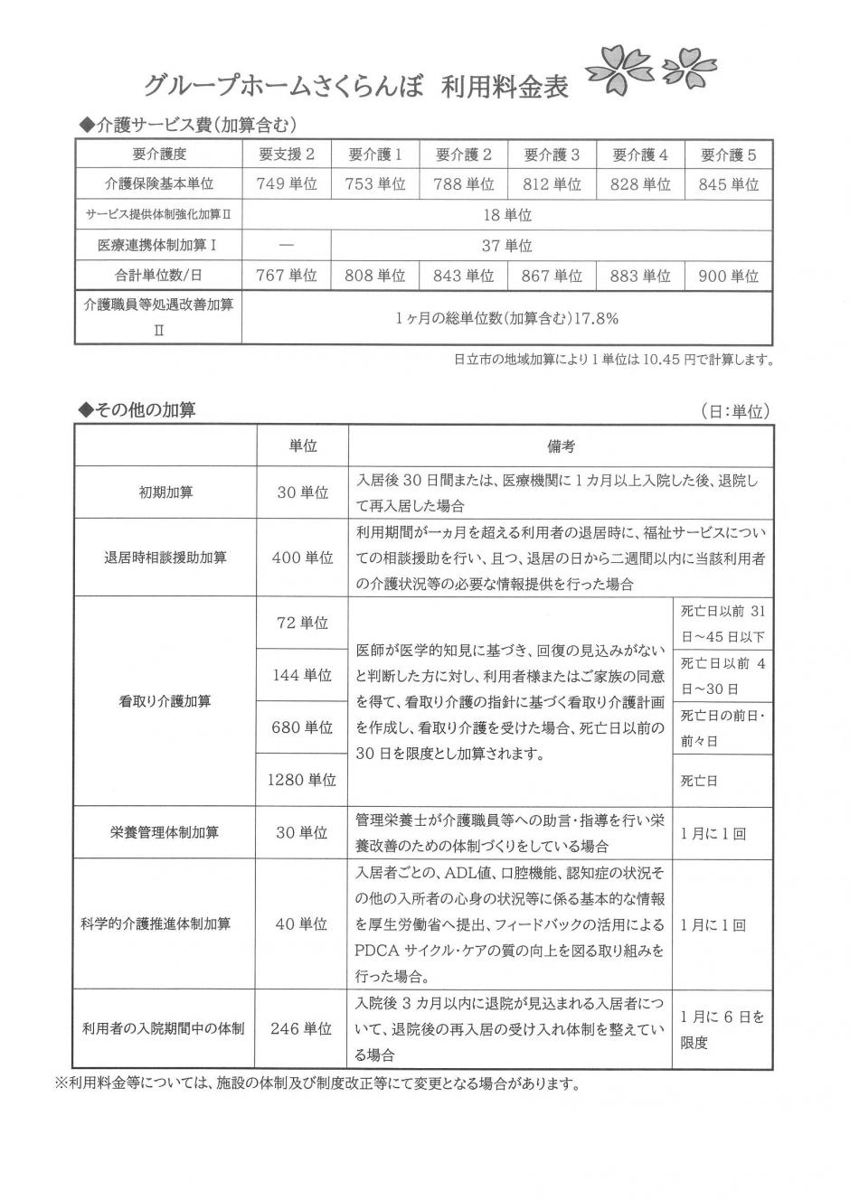 ・上記金額には食事代と居室代と水道光熱費が含まれています。