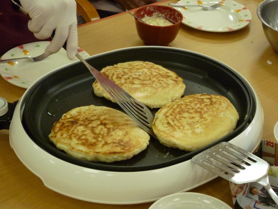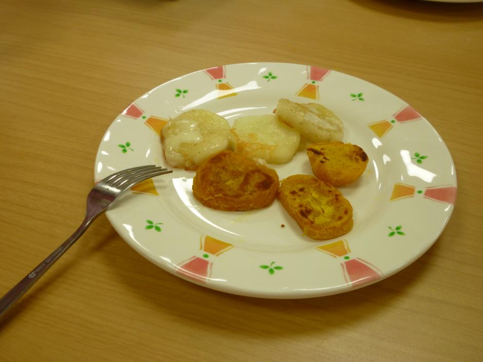 片栗粉を混ぜこねたシンプルなおやつでしたが、塩コショウやチーズなどの味付けもありとっても美味しく出来上がりました。ホットプレートで付いた焼き目がいい香りでしたね。