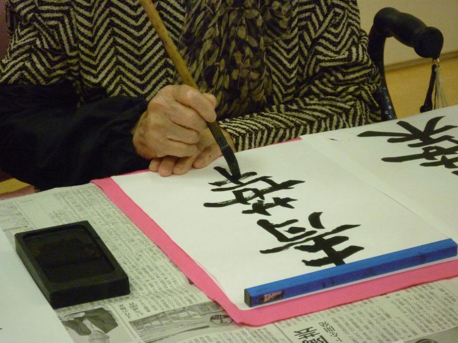 書道教室は「紅梅」をお手本に今回チャレンジしました。生け花教室は「小豆柳」という珍しい植物を使用しました。今年最初の午後の創作活動に皆さん集中されていました。