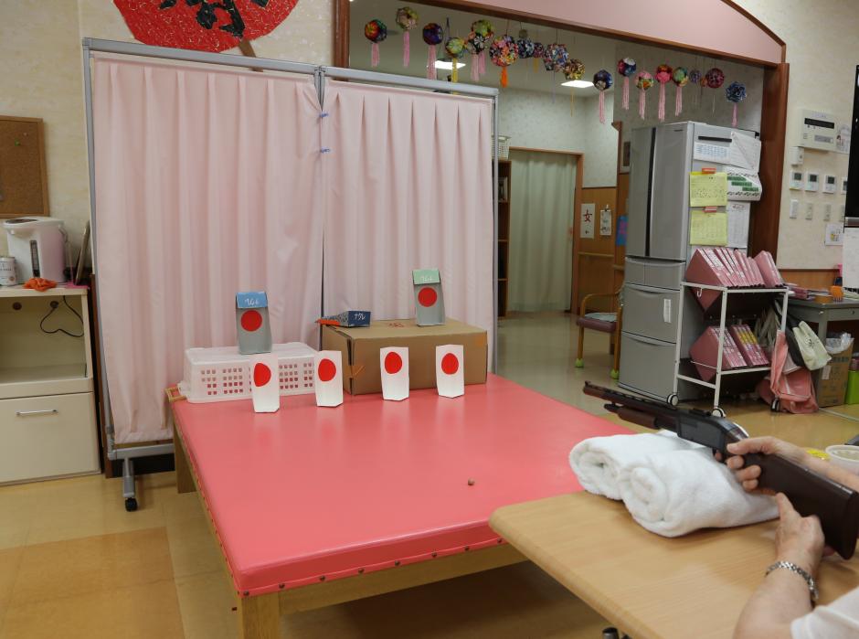 コーヒー豆落とし、風船を仰いで競う「あおげあおげ」、足しか使ってはいけない新聞紙送り「走れメロス」、二人で協力して的を狙う競技など種目も満載です。