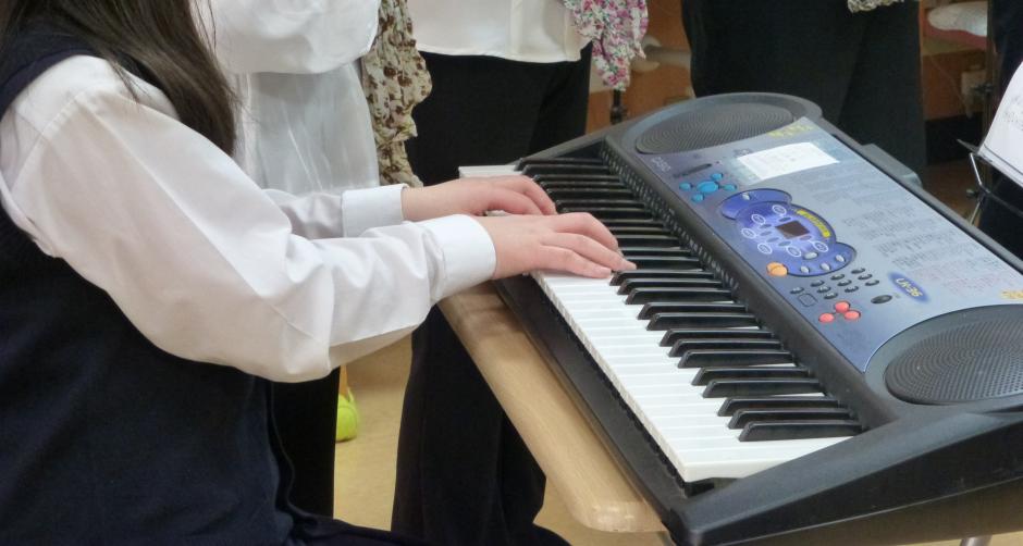 曲目は童謡や昔の曲、そしてリクエストには「喜びの歌」を引いて頂きました。お孫さんのような年齢の発表者に真剣かつ優しい眼差しで聞き入る姿がとても印象的でした。