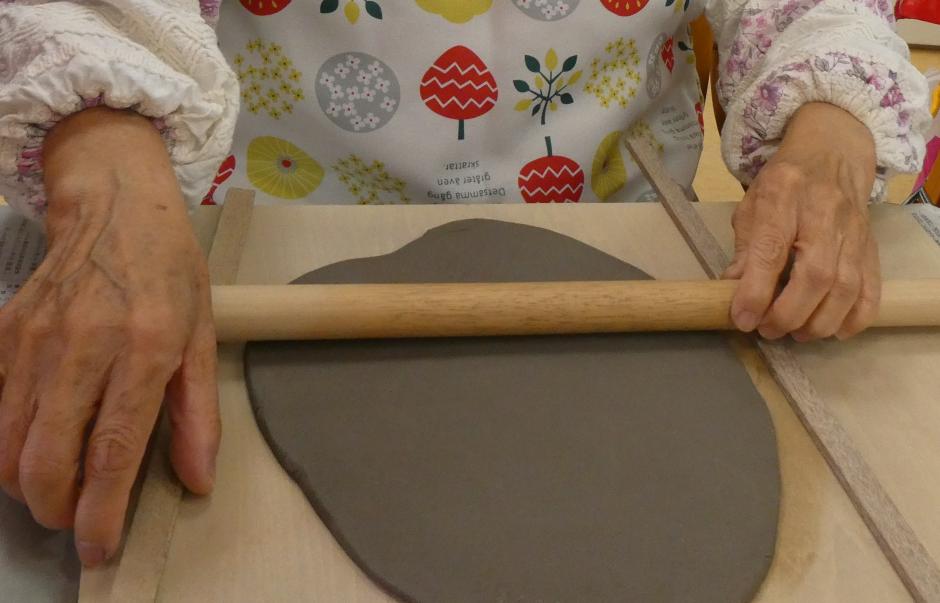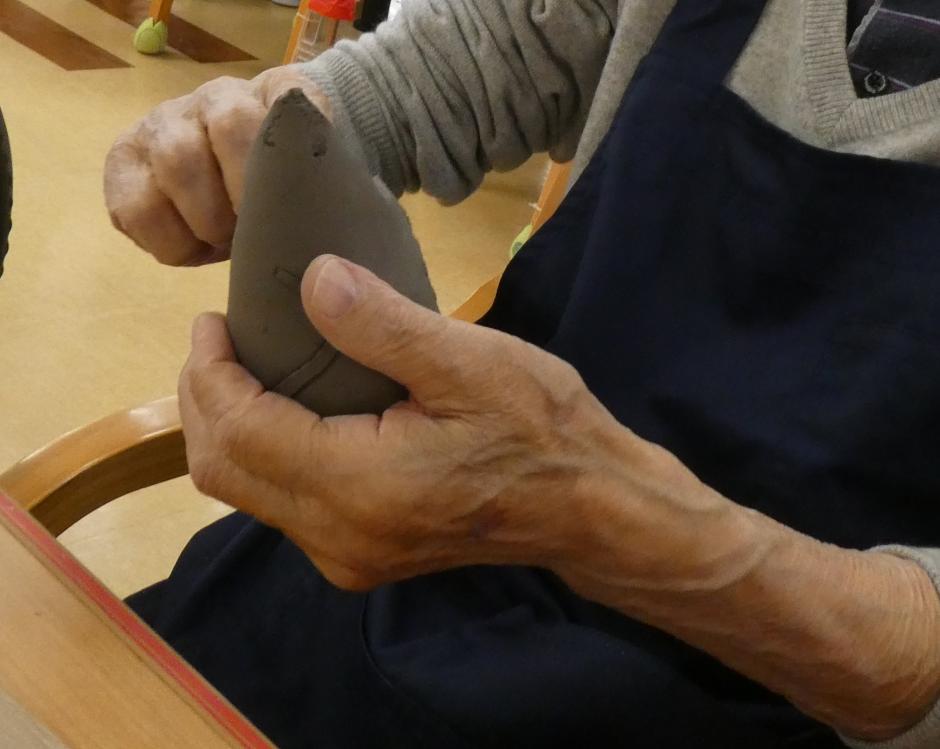 8月9日・10日は、2年振りの陶芸教室で干支の置物作りを行いました。先生のお手本を見ながら、職員や同じテーブルの方と相談しながら作業しました。粘土を触ると、目が輝き、こねて、面棒で伸ばす表情は真剣で職人のようです。型紙から取った粘土を形に整えて世界で1つだけの寅の置物が完成です。成形し、乾かし、焼き上げ、お手元に届くのは約1ケ月後となります。ご自分で作った縁起物で良い年が迎えられそうですね。楽しみにお待ち下さい。