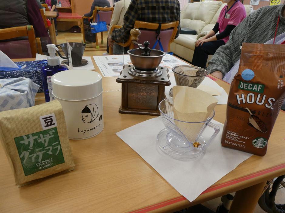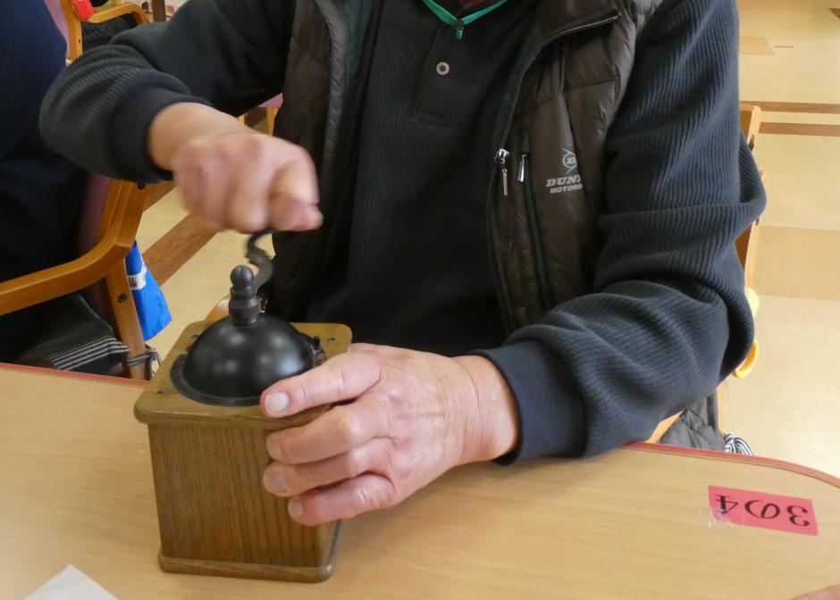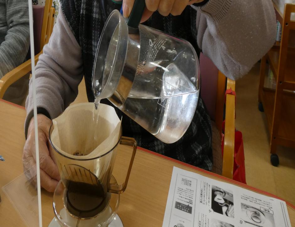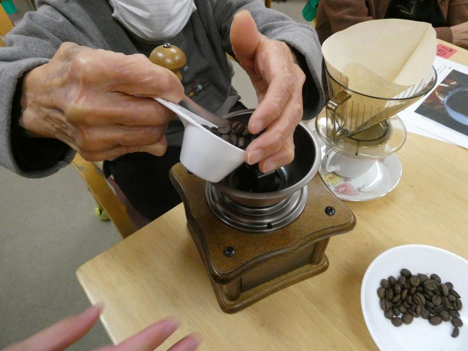 コーヒーミルを回す際には力が必要で利用者様同士、協力しながら美味しいコーヒーを淹れることが出来ました。また、若い頃に喫茶店に通った思い出話をして利用者様同士、会話が弾んでいました。