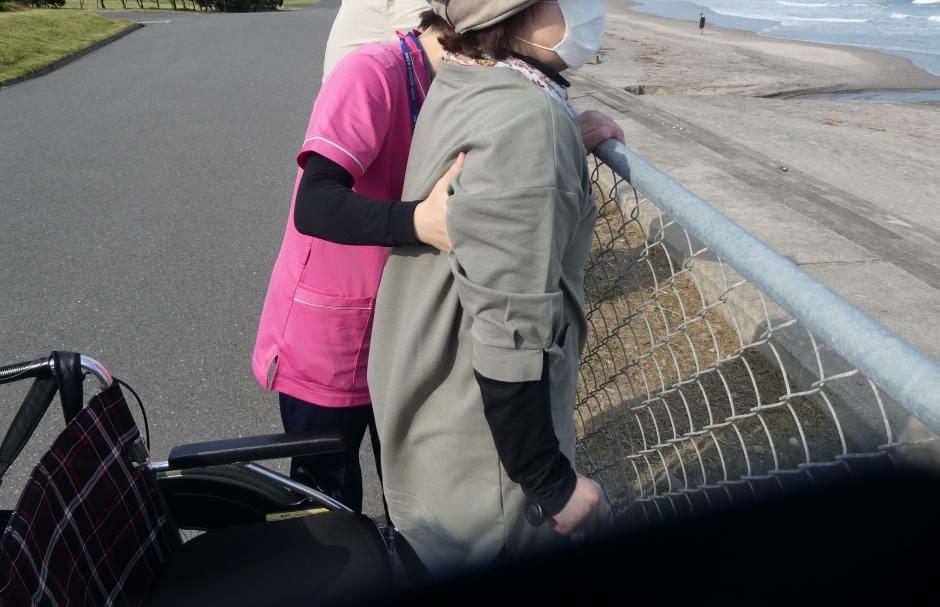 10月1日から7日にかけて1週間「海に行こう」のイベントを開催し、河原子北浜海岸へ外出レクリエーションを実施しました。天候に恵まれず、海に行けない日には近くの公園で輪投げや歩行練習、中には草引きを行う利用者様もいらっしゃいました。リハビリも目的の1つとしており、海岸で歩行練習や立位練習をして海を見て夏の終わりを感じてきました。普段と違う景色の中のリハビリはまた違った良さがありますね。