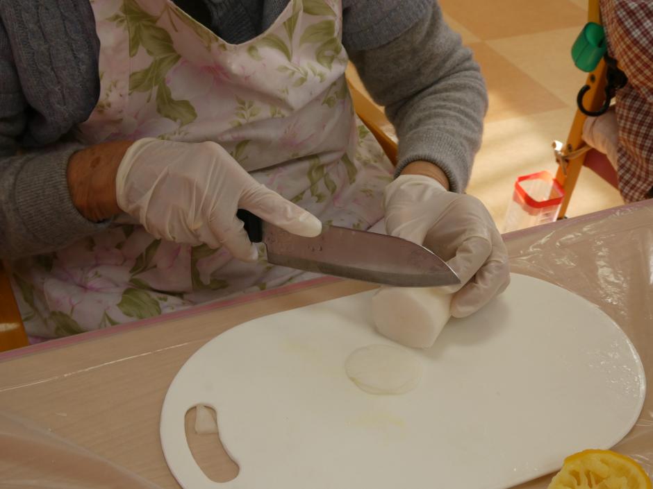 さて、新年初のイベントは、ゆず大根と切り干し大根作りを行いました。普段あまり調理をされない利用者様は久しぶりに持った包丁に四苦八苦していましたが笑顔も沢山見られるイベントとなりました。